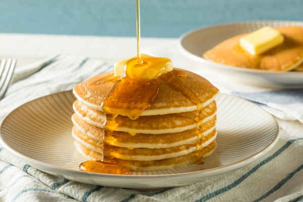 Pancakes served with Tropicana Orange juice and freshly brewed coffee.