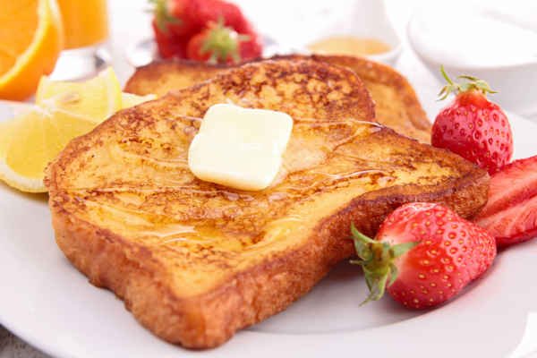 French toast served with Tropicana Orange juice, freshly brewed coffee.